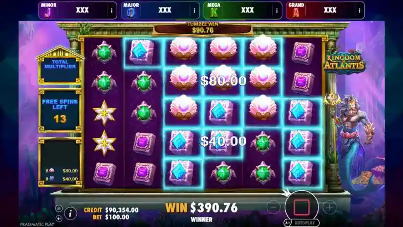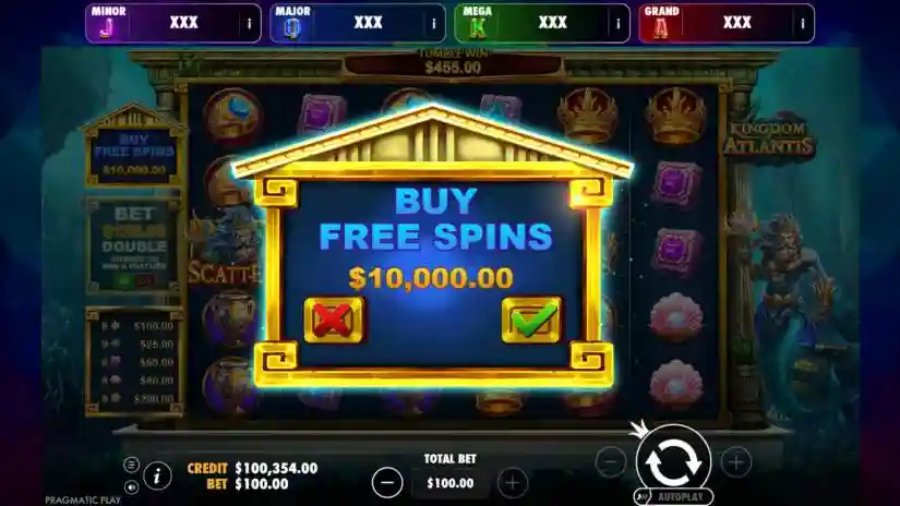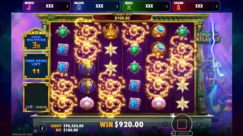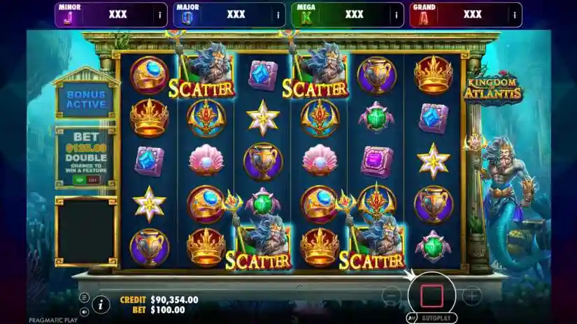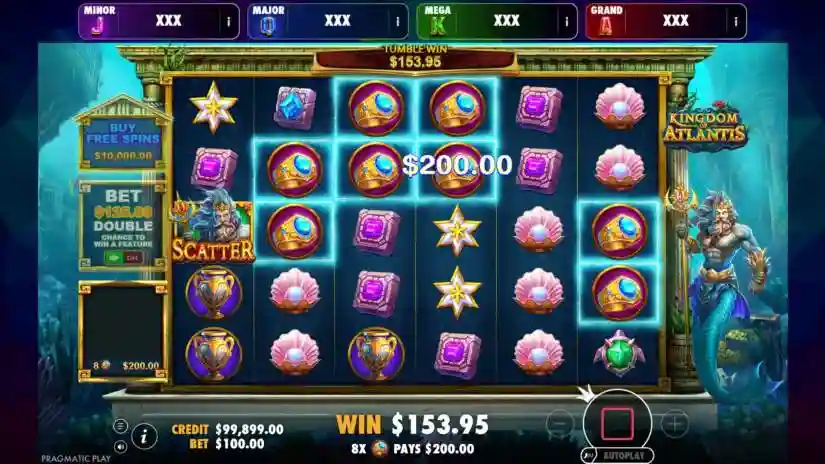 In Kingdom of Atlantis Jackpot Play from Pragmatic Play, Poseidon awaits you underwater. Symbols pay out anywhere on the screen. The total number of identical symbols on the screen at the end of the spin determines the winning amount.