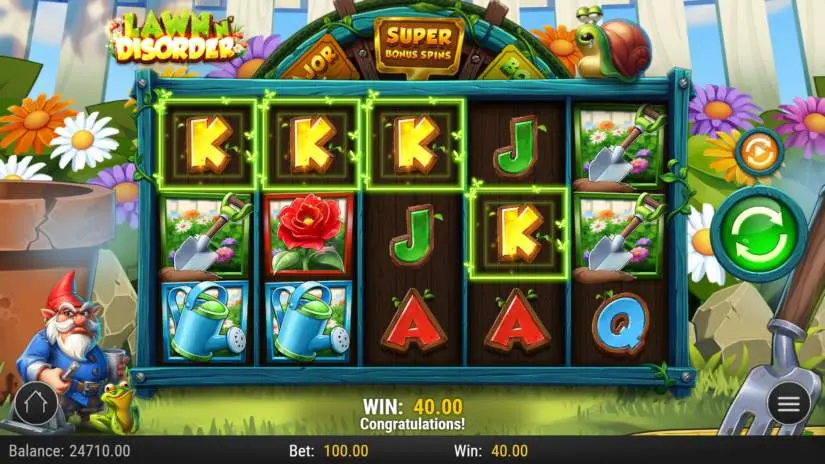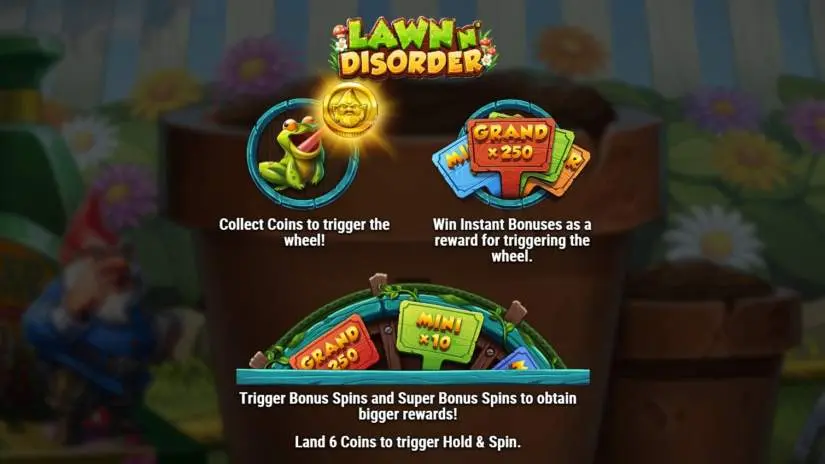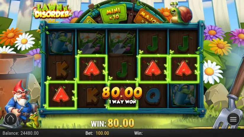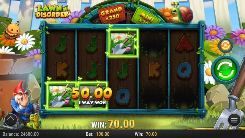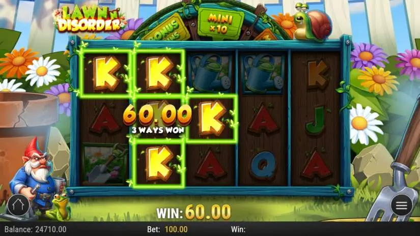 243 ways to win in Lawn n’ Disorder! Way wins are awarded for combinations of adjacent symbols from left to right. Winning combinations start from the leftmost reel. Only the highest winning combination pays for each symbol combination.