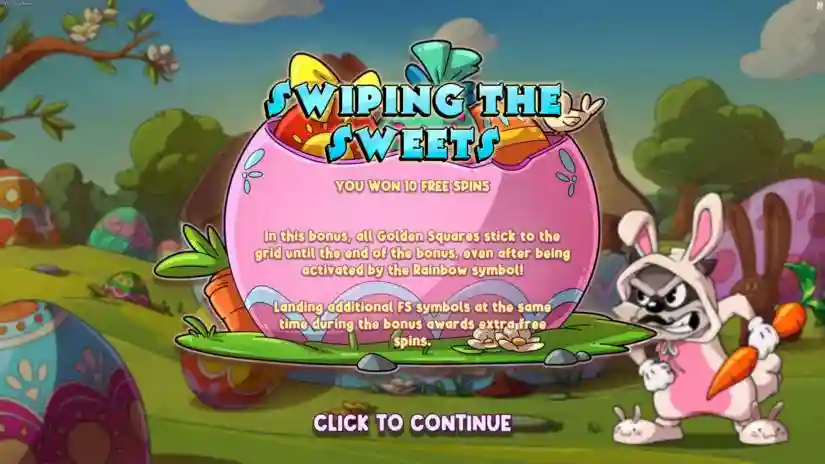 If the player purchases SWIPING THE SWEETS, the theoretical return percentage is 96.36%. For full details on this feature, see the section above. 10 free spins, in which the Golden Cages remain illuminated even after activation! Volatility: Medium.