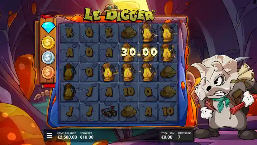 The maximum win in Le Digger is 15,000, multiplied by the current bet level. The maximum win can be achieved by activating certain combinations and/or features.