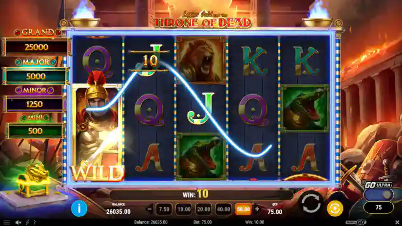 Legion Gold and the Throne of Dead is a 5-reel, 25-fixed payline slot from Play’n GO. Win up to 10,000 times your stake on regular bets!