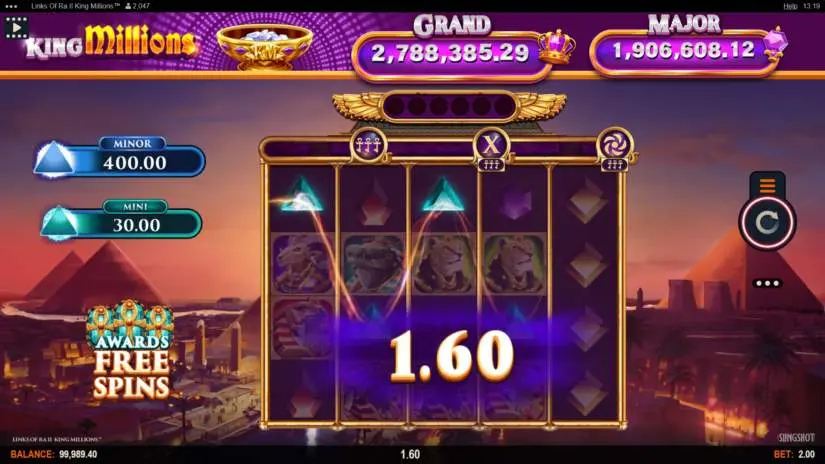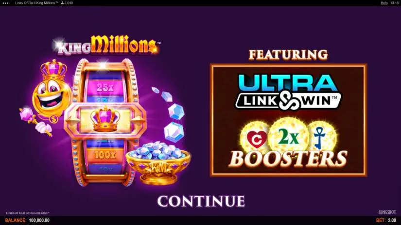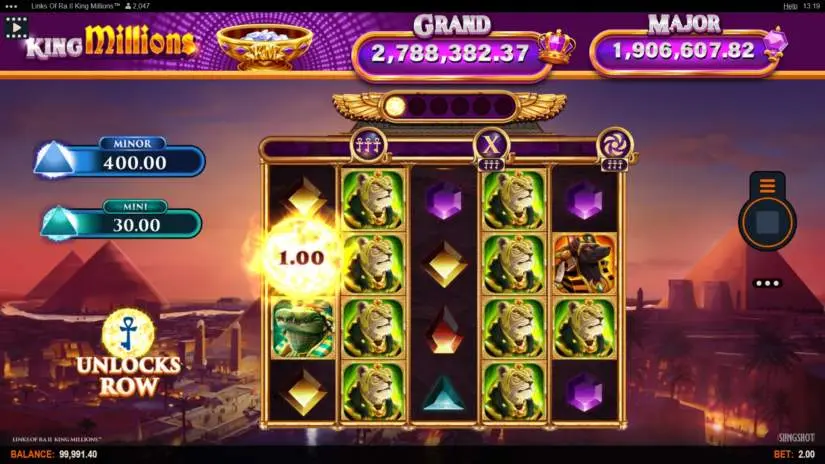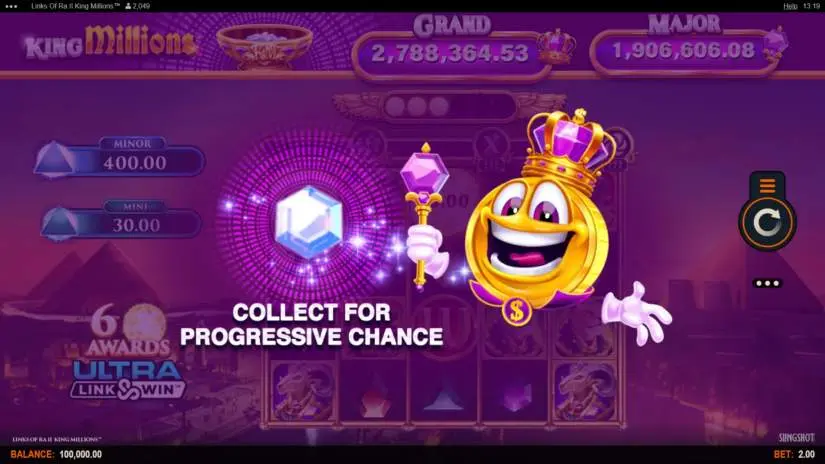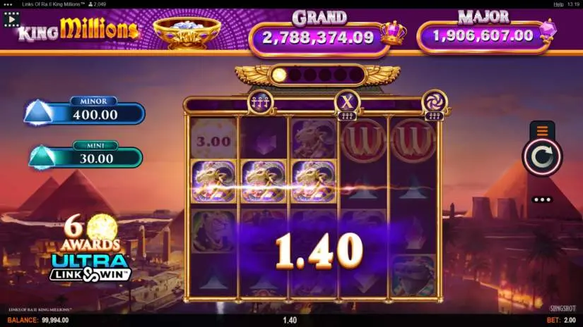 Links of Ra 2 King Millions is a 5-reel, 4-row video slot from Slingshot Studios. This game features 40 fixed paylines active on every spin. The goal is to spin the reels until a winning combination appears.