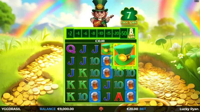 Hitting 4 or more Scatter symbols or achieving 9 consecutive wins in the main game brings 8 free spins. Scattering 4, 5 or 6 Scatter symbols also brings cash wins: 1.5x, 2.5x and 50x the stake respectively. Winnings for Scatter symbols are added to the main winnings.