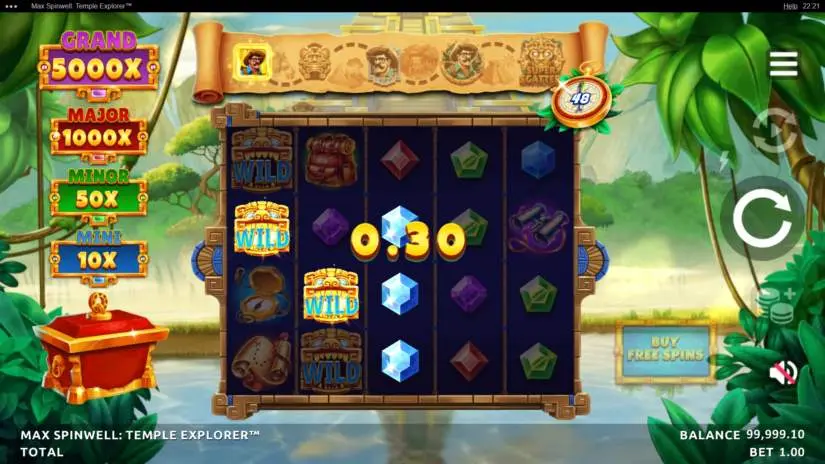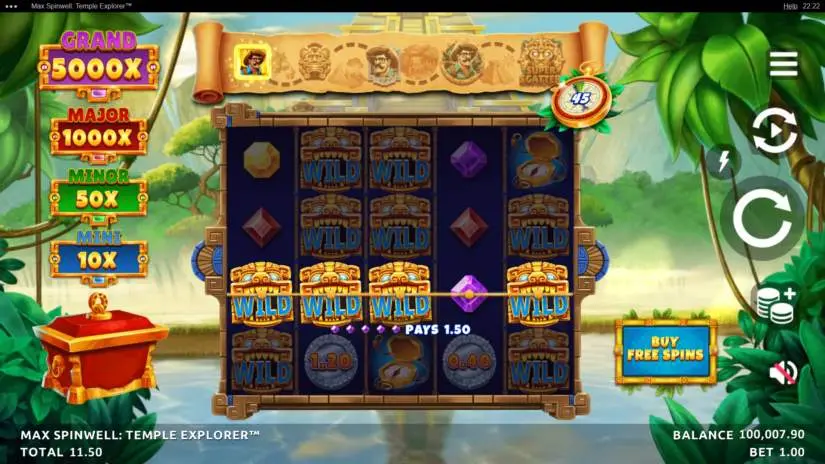 Max Spinwell: Temple Explorer is a 5-reel, 4-row slot machine from Northern Lights. The goal is to spin the reels until a winning combination appears. Winning combinations are highlighted on the reels and pay out.