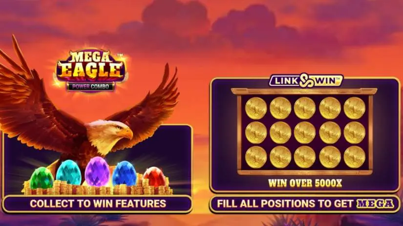 Mega Eagle Power Combo is a 5-reel, 3-row slot from Just For The Win. This game features 20 lines and features cash symbols, Link & Win™, progression tokens, and a Charged feature.