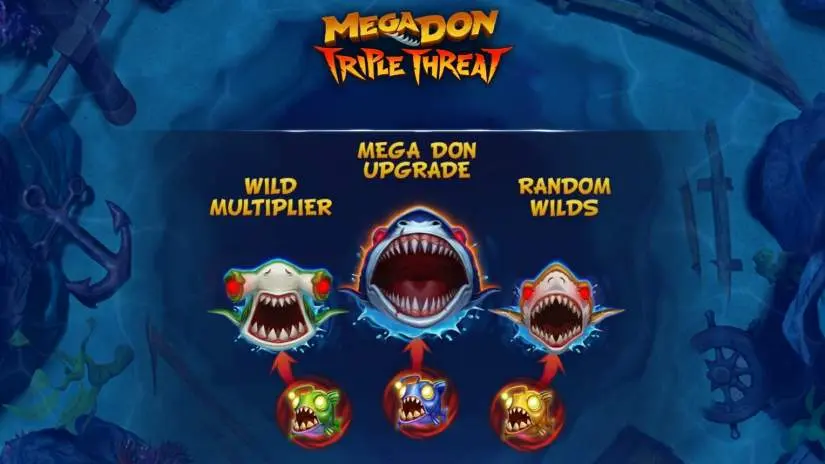 Collecting colored SCATTER symbols can activate up to 3 SHARK FEASTS: LEOPARD FEAST, HAMMERHEAD FEAST and MEGA DON FEAST.