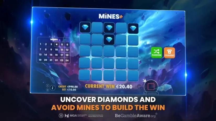 Discover diamond multipliers in Mines+ from Pragmatic Play. This exciting arcade game features a 5×5 grid where players open boxes and avoid mines to increase their winning multiplier. The more boxes opened without detecting a mine, the higher the winnings. Players can withdraw winnings at any time or open all the diamonds for the maximum prize.