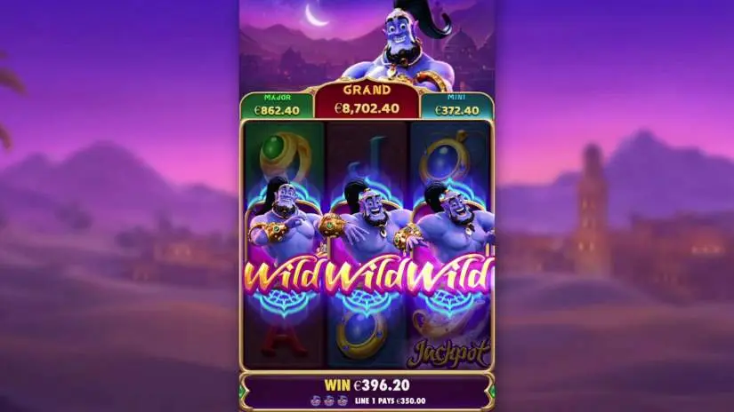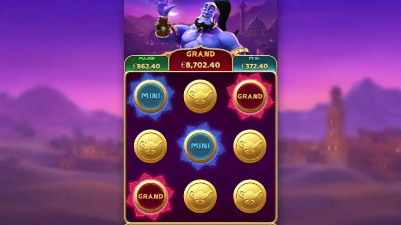 Summon the Genie in Mystic Wishes by Pragmatic Play and get a chance to win one of three huge jackpots. If a wild symbol lands on two of the three reels, the reel without a wild symbol spins again for free. Jackpot icons will randomly attach to the lamp symbol. When three jackpot icons land, the bonus game is activated. During the bonus, you will reveal symbols until three identical jackpot prizes are revealed, which will award a win of 38, 88 or 888 times the total bet.