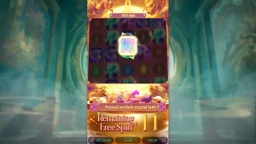 Mythical Guardians is a 5-reel, 4-row video slot from PG Soft where framed symbols expand horizontally or vertically, transforming into random symbols. Winning framed symbols transform into Wild symbols and activate all symbol positions on the same reel or in the same row around it! Land 3 Scatter symbols to trigger 10 free spins and earn even bigger rewards!