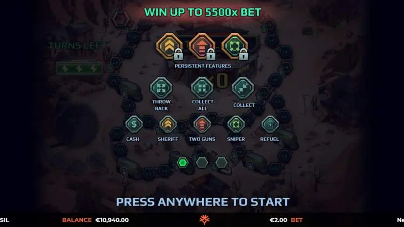 The maximum win in Neon West is 5,500 times the bet. When the maximum win exceeds this amount, the free spins end, and a win of 5,500 times the bet is awarded. The game round ends when the maximum win is reached. This rule applies to any additional free spins or features.