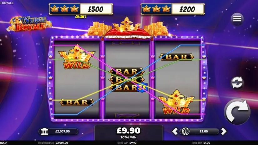 Nudge Royale has 9 paylines, all of which must be triggered.