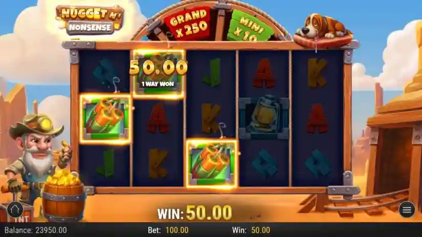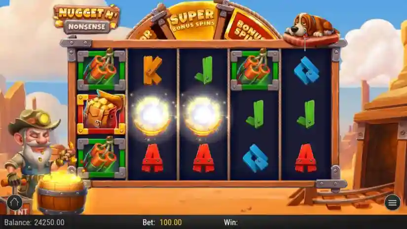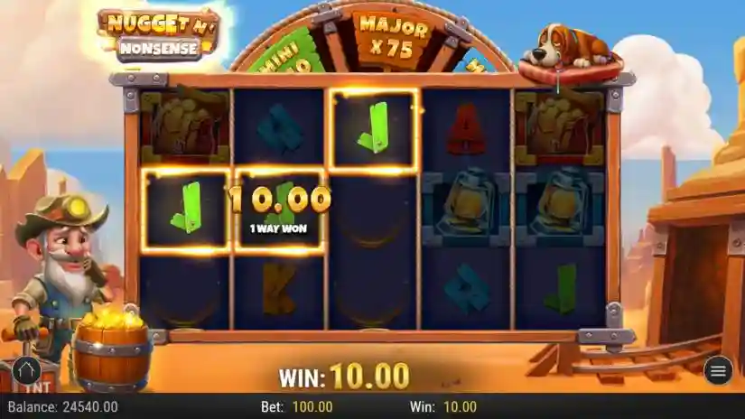 Nugget n’ Nonsense is a 5-reel video slot from Play’n GO with 243 paylines. Paylines are awarded for adjacent symbol combinations, from left to right. Winning combinations start from the leftmost reel. Only the highest winning combination for each symbol combination is paid.