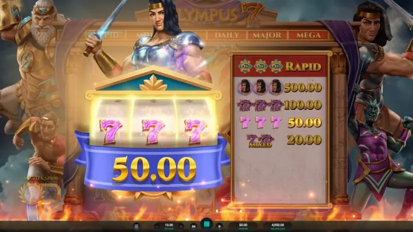 Once all the mini-slots have been spun, there’s a chance that Olympus will trigger a respin. This means all the mini-slots will begin spinning again. Olympus can respin multiple times.