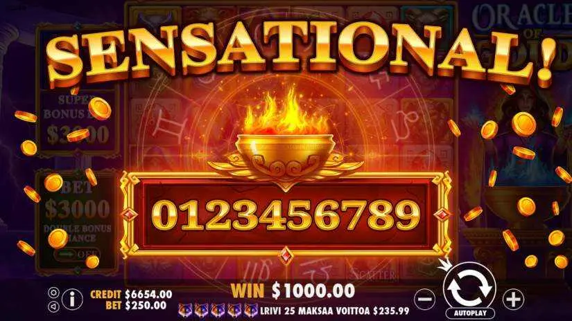 The maximum win in the Oracle of Gold slot is capped at 10,000x. If the total win during the FREE SPINS round reaches 10,000x the bet, the round ends immediately, the winnings are awarded, and all remaining free spins are cancelled.