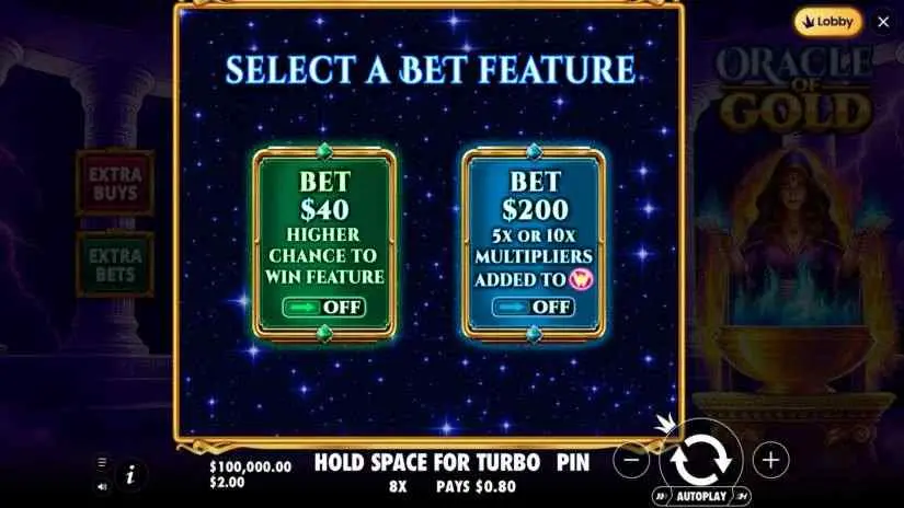 The player has the option to select a bet multiplier. The game behaves differently depending on the selected bet.