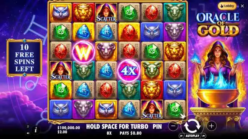 Enchanted treasures are ready to be discovered in Oracle of Gold from Pragmatic Play. Symbols pay out anywhere on the screen. The total number of matching symbols on the screen at the end of the spin determines the winning amount.