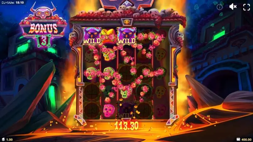 3 bonus symbols landing on reels 1, 3, and 5 trigger the bonus game. Three initial free spins are awarded. The bonus game features no standard Wild symbols, only Pablo Wild collectible symbols. Landing a new Pablo Wild collectible resets the number of spins to 3. The Pablo Wild collectible symbol collects all available credit symbols on the screen and triggers the Diablo Re-Spin feature, which functions exactly as in the base game.