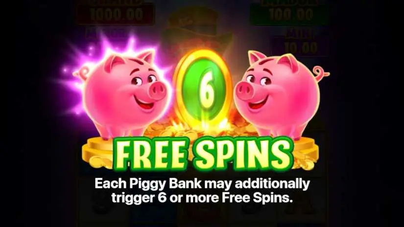 When the Wild symbol lands on the reels, it adds coins to one or both Piggy Banks. Any Piggy Bank can trigger 6 Free Spins.