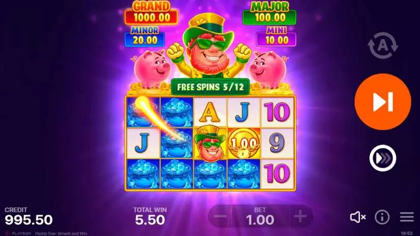 A winning line in Paddy Star: Smash and Win occurs when symbols form a combination from the leftmost reel to the rightmost reel. Only the best combination on a line is paid. The number of active lines is fixed at 15.