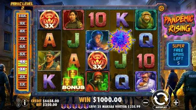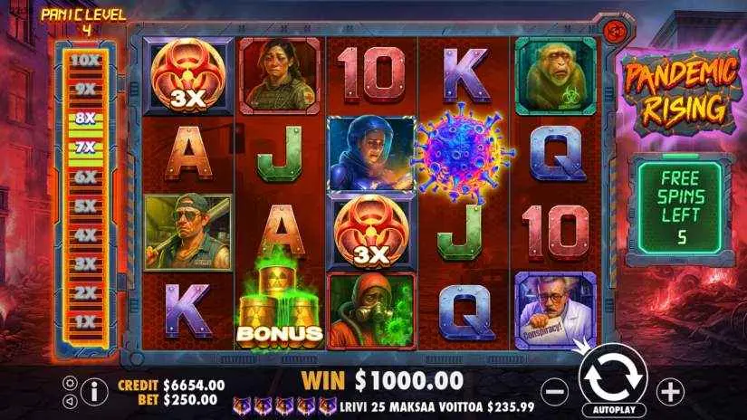 All symbols in Pragmatic Play’s Pandemic Rising pay from left to right on adjacent reels, starting with the leftmost reel.