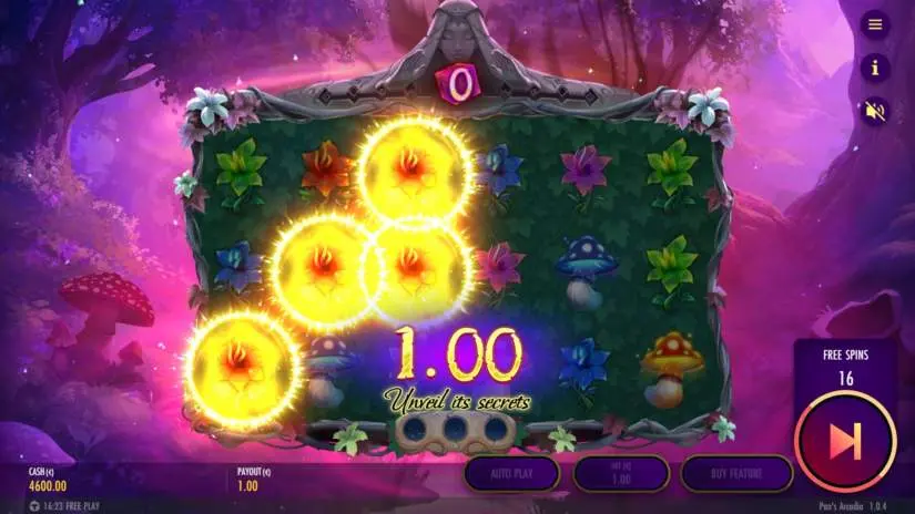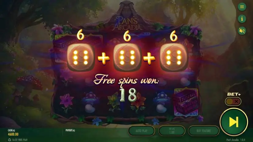 The maximum total bet multiplier in Pan’s Arcadia per game round is 4320. If this limit is reached, the game round will end and no additional winnings will be paid out.