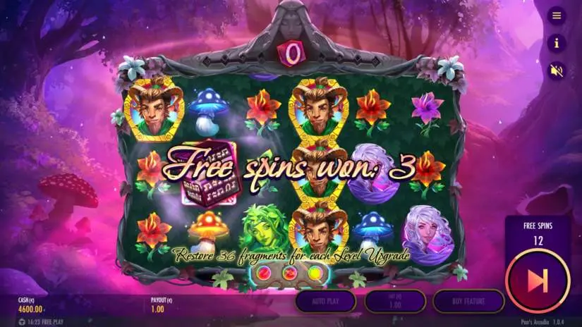 Pan’s Arcadia by Thunderkick is a 6×3 video slot with 13 fixed paylines. The game features Wild multipliers, a Mystery feature, and a multi-level bonus game with free spins, special Wild features, and re-triggers. The theoretical return to player (RTP) is 96.10%.