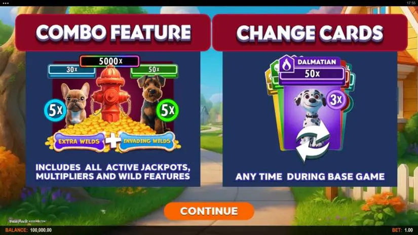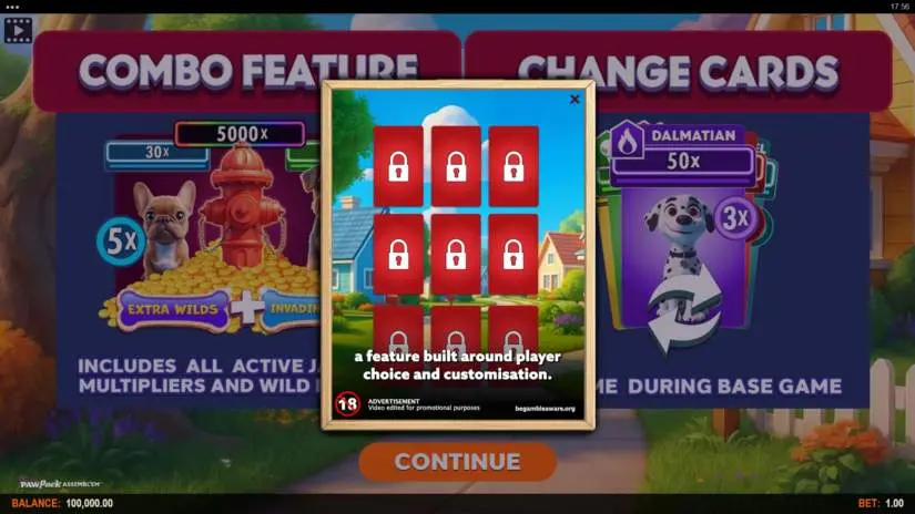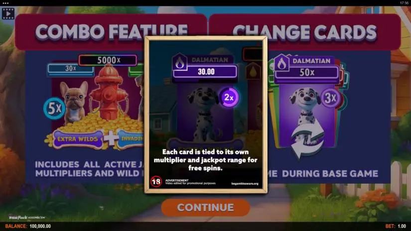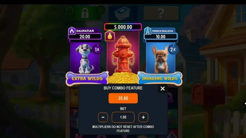 A collection of Overlay Tokens can increase the character card’s jackpot by 1x the total bet or a 0.5x multiplier for each collection. Overlay Tokens can only land and be collected by unlocked character cards. Up to 5 Overlay Tokens can land per spin in the main game, 1 per reel. Unlocked character cards can only be activated for the Free Spins with Extra Wilds and Invading Wilds features. The same unlocked character card cannot be active simultaneously for the Free Spins with Extra Wilds and Invading Wilds features. To unlock a card, you must meet specific conditions unique to each card. Depending on the character card, the unlocking criteria may include a certain number of spins in the main game, Free Spins features, days of gameplay, or reaching a certain calendar date. Purchasing Free Spins does not affect the number of Free Spins feature triggers required to unlock any character cards. Only base game spins will contribute to the total number of spins needed to unlock any character cards. The Fire Hydrant card is not a character card; it is always active and can trigger the combined free spins feature.
