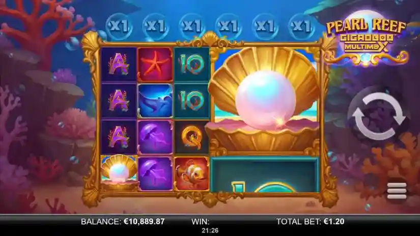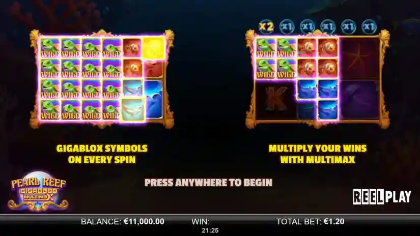 Welcome to the Pearl Reef Gigablox™ Multimax™ Video Slot from ReelPlay. It features 6 reels, 4 rows, and the following features: