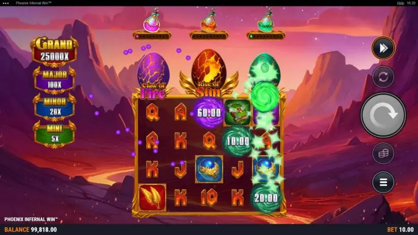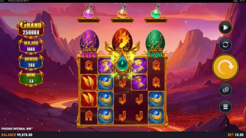 Phoenix Infernal Win is a 5-reel, 4-row slot machine from Foxium. The goal is to spin the reels until a winning combination appears. Winning combinations are highlighted on the reels and pay out.