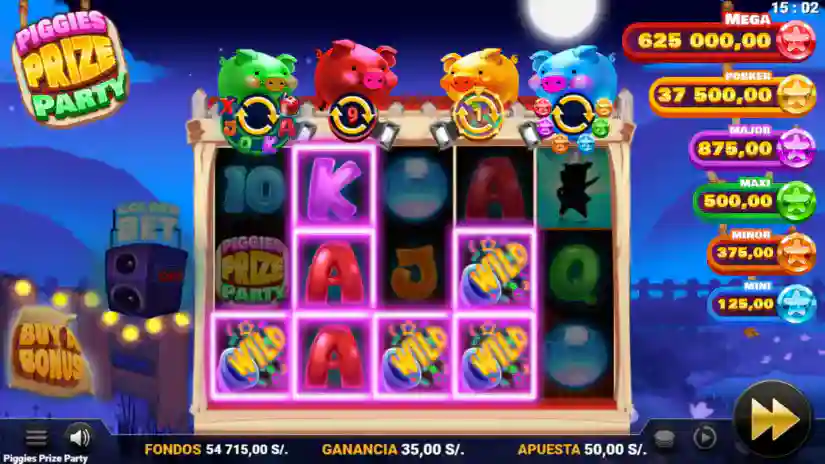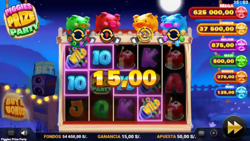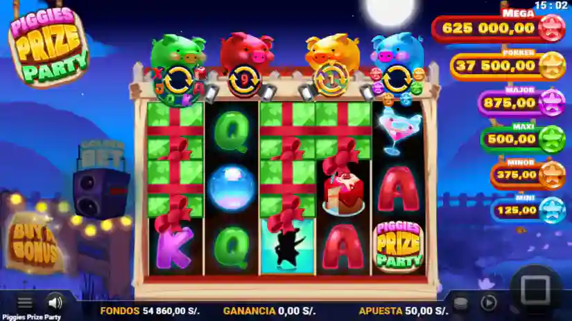Any pigs collected in the Golden Piggy Bank meter are distributed across the Wheel of Fortune as additional red, green, or blue pigs. This wheel also initially displays bet multiplier values and segments with a red, green, and blue pig. One spin of the wheel is awarded. The prize indicated by the indicator at the end of the spin can be a bet multiplier payout, a single or combined free spins feature, or a combination of a bet multiplier payout and a single or combined feature. The multipliers on the wheel are x2, x3, x4, x5, x6, x8, x10, x15, and x20, and these are multipliers of the base bet. The maximum number of golden pigs that can be collected is 30. The presentation of prizes on the wheel in the game is for visual effects only and does not correspond to a realistic representation of probabilities and does not affect the awarding of the prize(s).