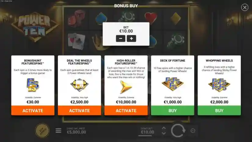 If a player purchases DECK OF FORTUNE, the theoretical return to player (RTP) is 96.17%. For full details on this feature, see the section above. 10 free spins with an increased chance of Wheels of Power! Volatility: Very High.