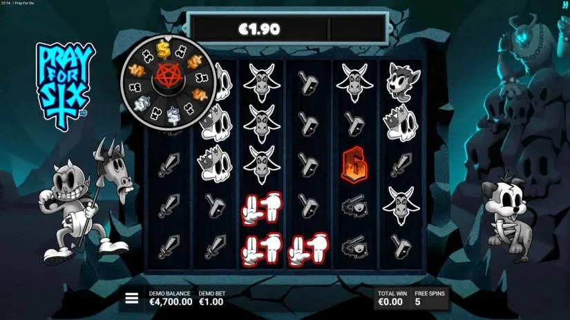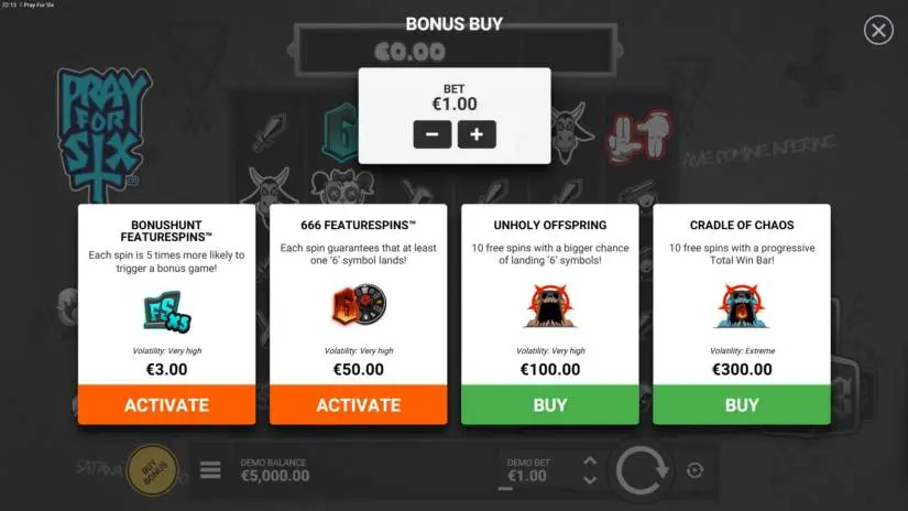This bonus retains the UNHOLY OFFSPRING mechanic. Additionally, at least two ‘6’ symbols are guaranteed on every spin. If additional FS symbols appear simultaneously during the bonus, they award additional free spins: