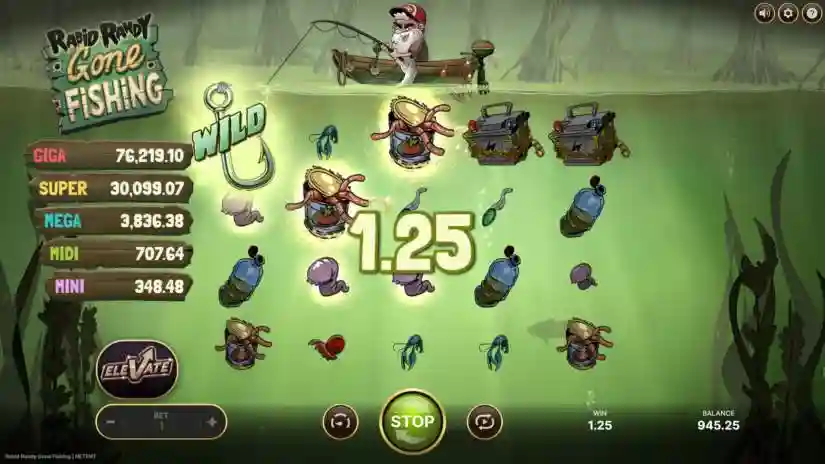 Rabid Randy Gone Fishing is a 5-reel, 4-row video slot from NetEnt featuring re-spins, cash prizes, various types of Wild symbols, free spins, a jackpot game with five progressive jackpots, and an Elevate feature with three variations.