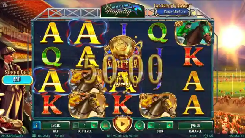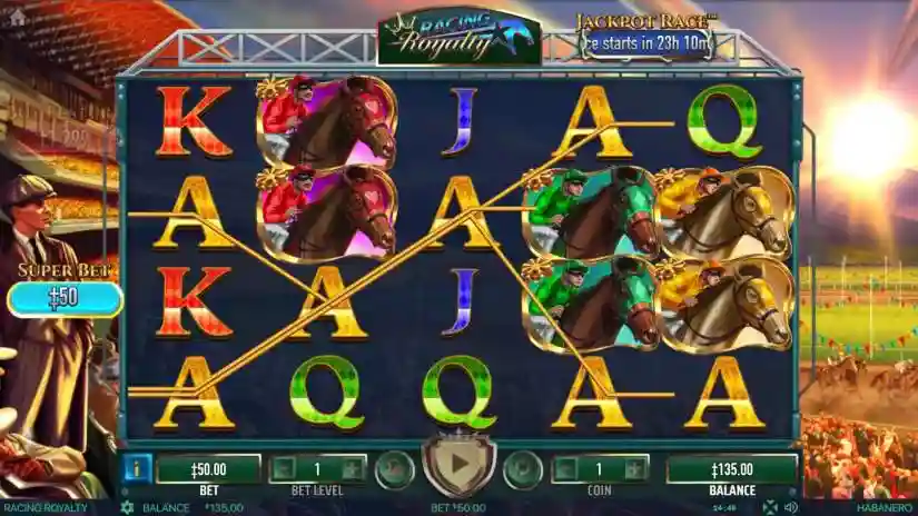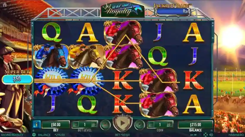 If 4 Horse symbols of the same type (or their doubled variations) and Wild symbols land on reel 1, all matching symbols and Wild symbols will be locked in place and trigger RE-SPINS. Any subsequent matching symbol or Wild symbol will be locked in place until the RE-SPINS ends. RE-SPINS will continue as long as symbols of the same type or Wild symbols continue to land.