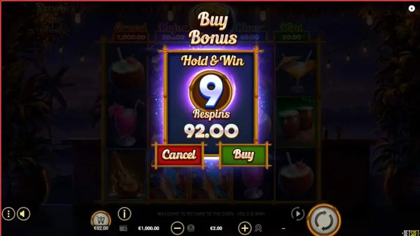 Click the “BUY FEATURE” button to purchase the “HOLD AND WIN” FEATURE with 9 REPLAYS! The cost to purchase this FEATURE is 46.00.