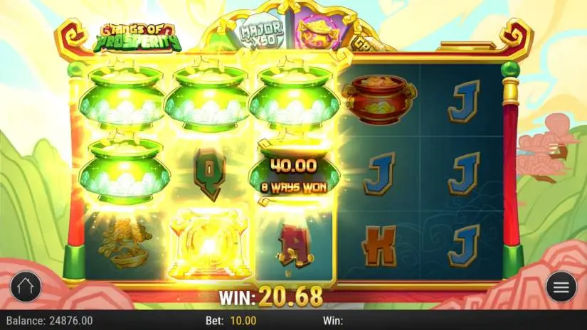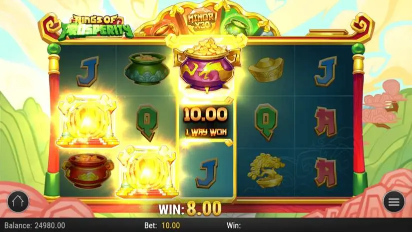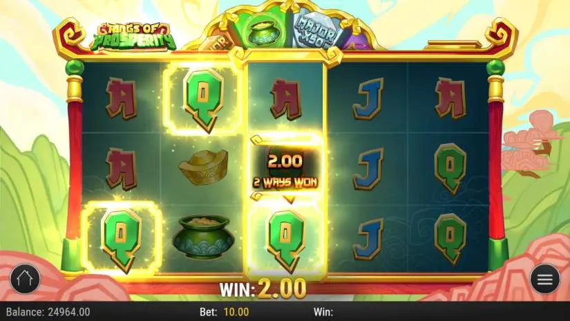 There are 243 WAYS TO WIN in Rings of Prosperity! Combinations of consecutive symbols from left to right are paid along the prize lines. Winning combinations start from the leftmost reel. For combinations of one type of symbol, only the highest-paying combination is paid.
