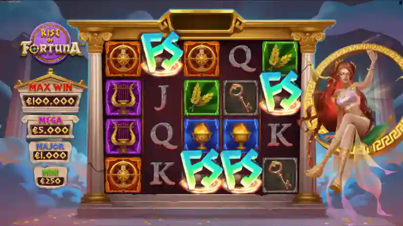 Rise of Fortuna is a 5-reel, 4-row slot from Hacksaw Gaming with payline wins and a maximum win of up to 10,000x your bet, available in all game modes!
