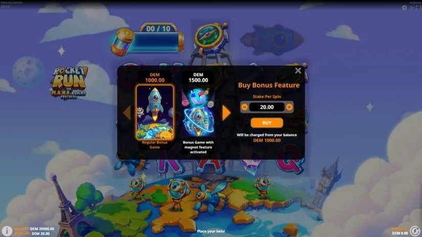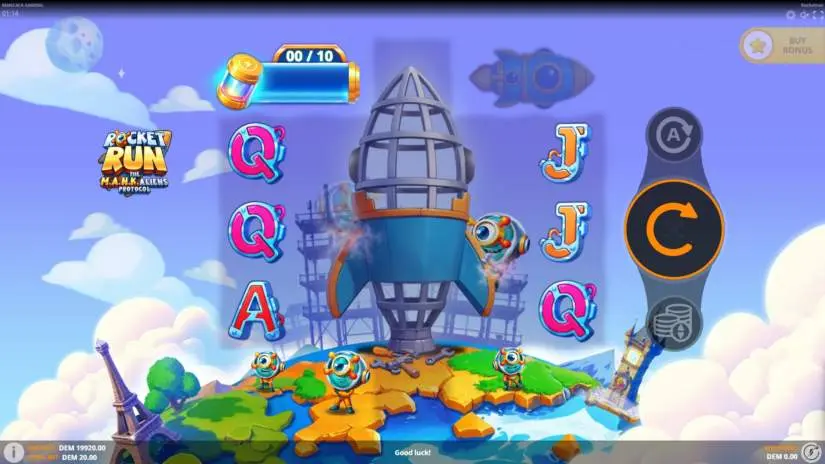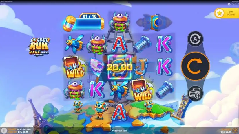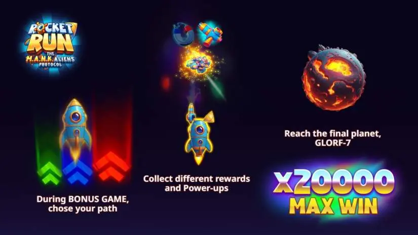 The maximum win in Rocketrun The M.A.N.K. Aliens Protocol is capped at 20,000x your bet. If your winnings, including those received through the Risk Game, exceed this limit, the final payout will be capped at 20,000x your bet.