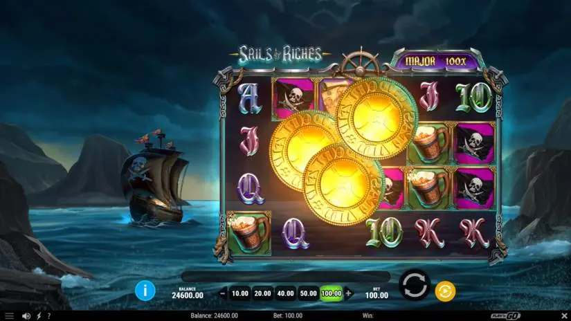 In Sails of Riches, paylines are awarded for combinations of consecutive symbols from left to right. Winning combinations begin on the leftmost reel. For combinations of the same symbol type, only the highest-paying combination pays out.