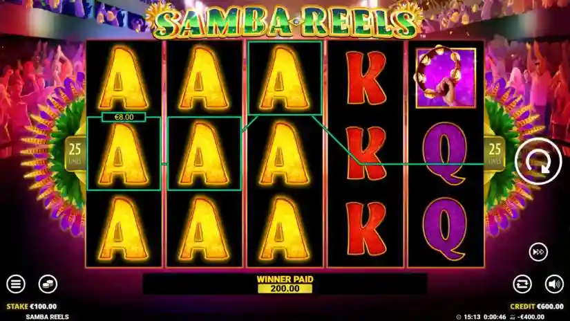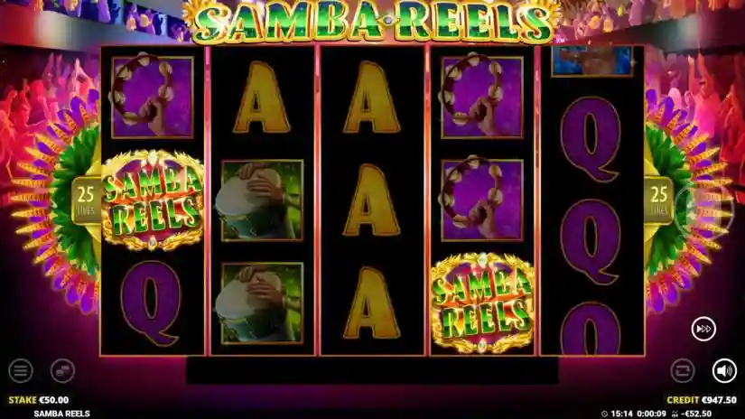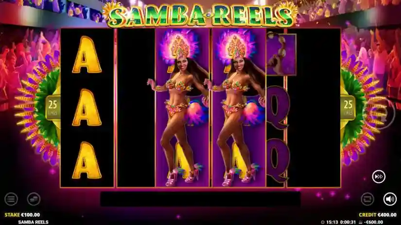 During the main game and free game, if 3 or 4 reels are filled with the same picture symbol, a samba shaft occurrs. After the initial win, full reels are shifted left, and incomplete reels are shifted right. An additional win occurrs after all reels have been shifted.