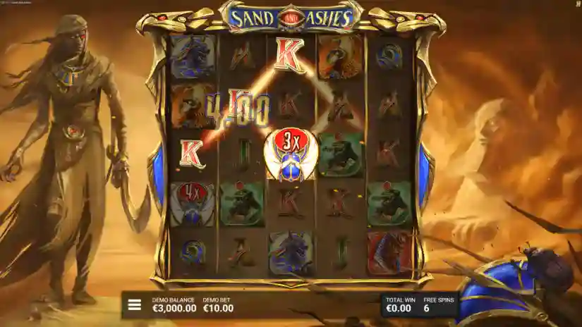 Furthermore, all Scarab Multiplier Wilds that land remain on the reels until the end of the bonus. They retain their position until displaced by a Sandstorm. The multiplier value remains for the entire bonus until increased by a Firestorm.