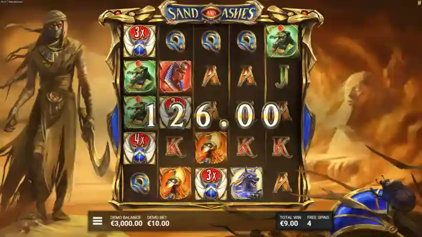 Sand and Ashes is a 5-reel, 5-row slot from Hacksaw Gaming with payline wins. Maximum wins of up to 10,000x your bet are available in all game modes!