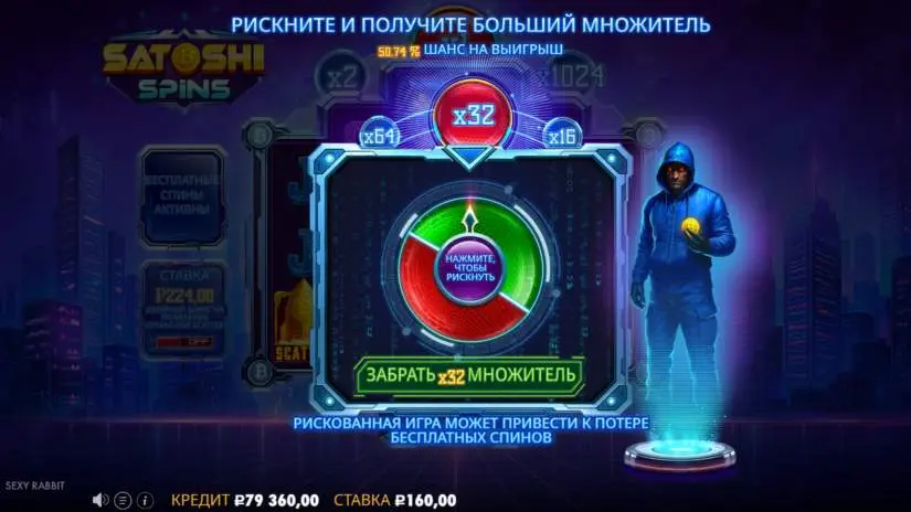 The maximum win in Satoshi Spins is capped at 5,000x the bet. If the total win for a round reaches 5,000x the bet, the round ends immediately, the winnings are awarded, and the remaining features are voided.