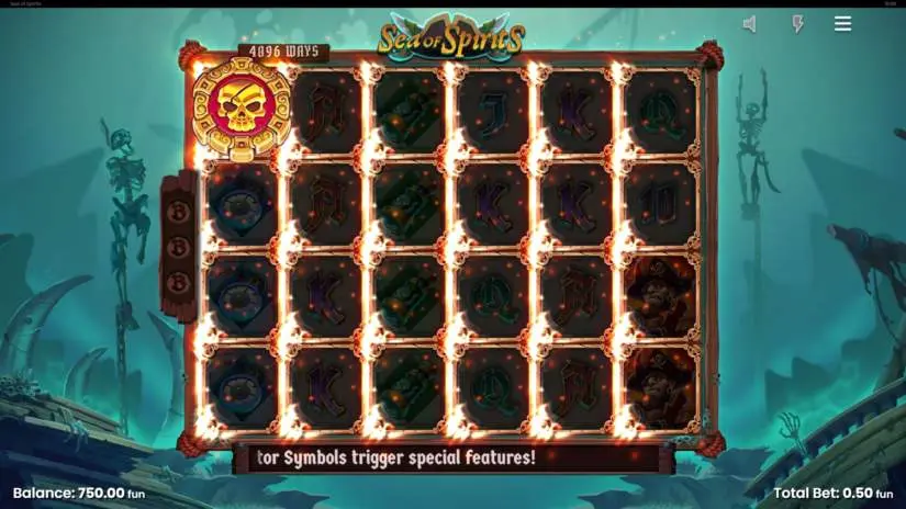Sea of Spirits is a 6-reel slot machine with 4 symbols on each reel.