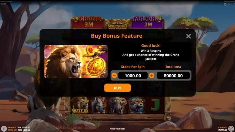 The Buy Bonus feature allows you to purchase a bonus game with 3 re-spins for 80x your bet.