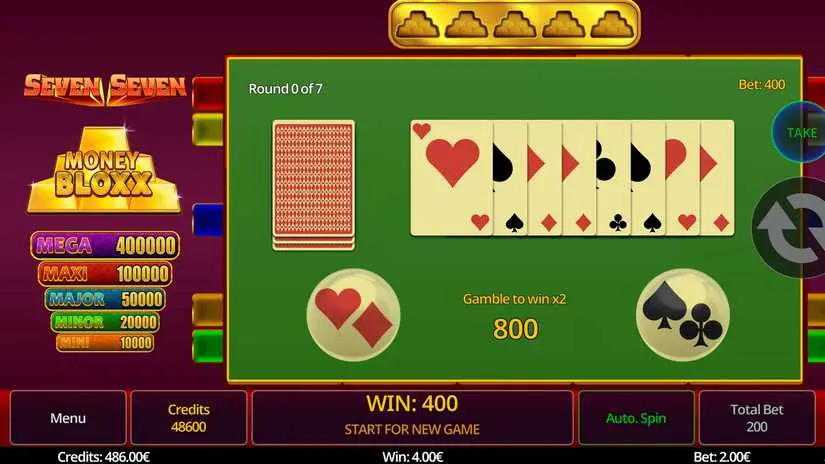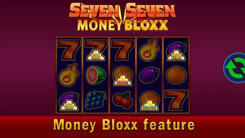 Seven Seven Money Bloxx is a 5-reel, 3-row slot from Swintt. Five or more Money Bloxx symbols trigger the Money Bloxx feature. The Scatter symbol is independent of paylines. Scatter wins are added to payline wins. Only the highest Scatter win is paid.