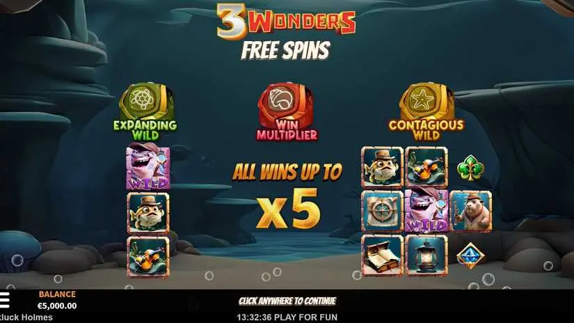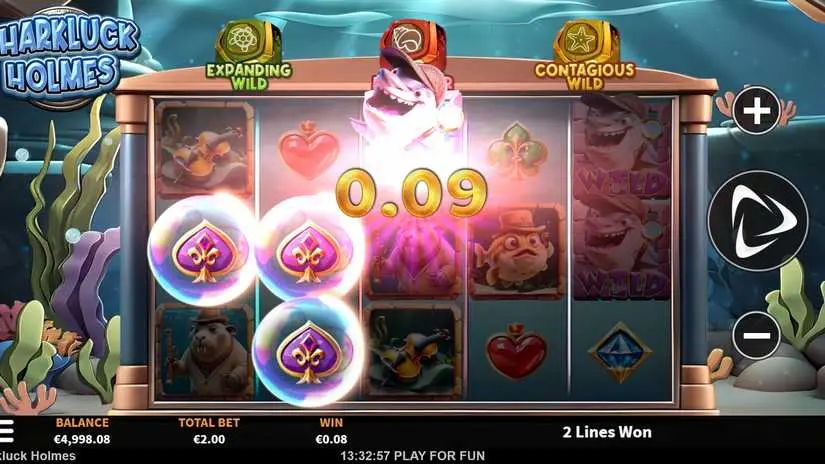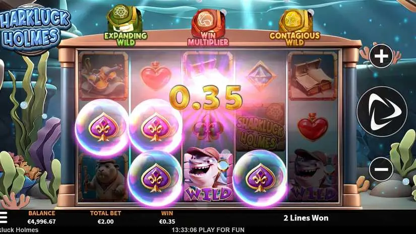 Welcome to the “Sharkluck Holmes” video slot from Boomerang Studios. It features 5 reels, 3 rows, and the following features:
