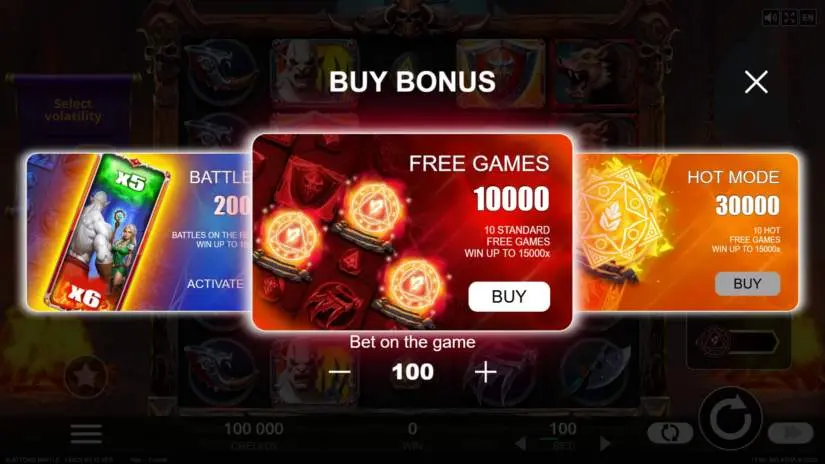 Slattors Battle has 20 active lines. The game operates on a “2 lines per credit” rule. When playing on 20 lines, the bet is only taken for 10 lines! Winning combinations are paid only from left to right. Only the highest win per active line is paid.