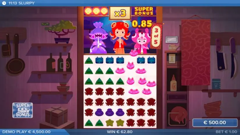 Collect an additional Slurpie symbol to add an additional Slurpie to the game. Up to three Slurpies can be active at a time.