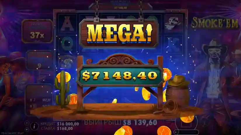 The maximum win in Smoke’Em is capped at 50,000x the bet. If the total win in a round reaches 50,000x the bet, the round ends immediately, the winnings are awarded, and all remaining spins are void.